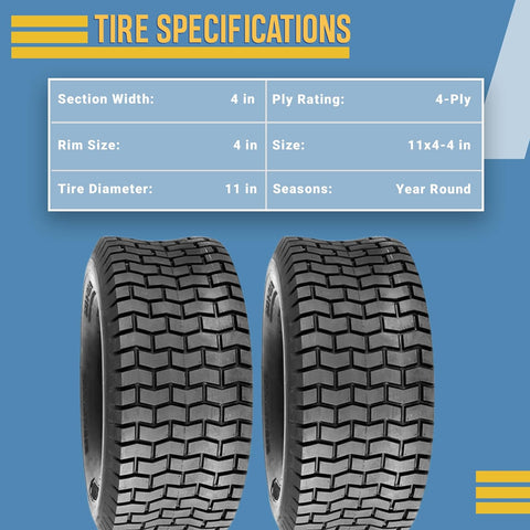 - āļøššššššš šššš šššššššš Elevate your lawn mower's performance with a pair of two 11x4.00-4 4-ply turf lawn mower tires. These tires are expertly designed to provide exceptional traction, ensuring your mower can navigate through various terrains and grass types effortlessly