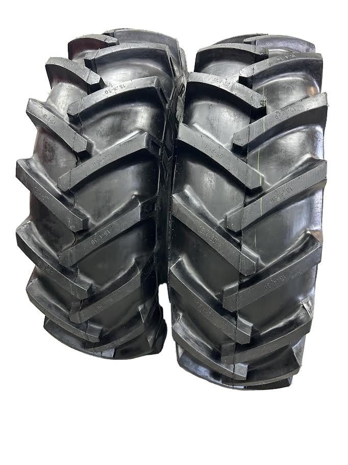 This 18.4-38 tractor tire is a versatile agricultural tire commonly used on medium to large tractors. It features a wide tread design for excellent traction in fields and stability on uneven terrain. This size is ideal for heavy-duty farming tasks like plowing, tilling, and hauling. The durable construction ensures longevity and resistance to wear, while the deep lugs provide optimal performance in wet and dry soil conditions. Suitable for rear tractor wheels, the 18.4-38 is a reliable choice for maximizing productivity in various farming applications.