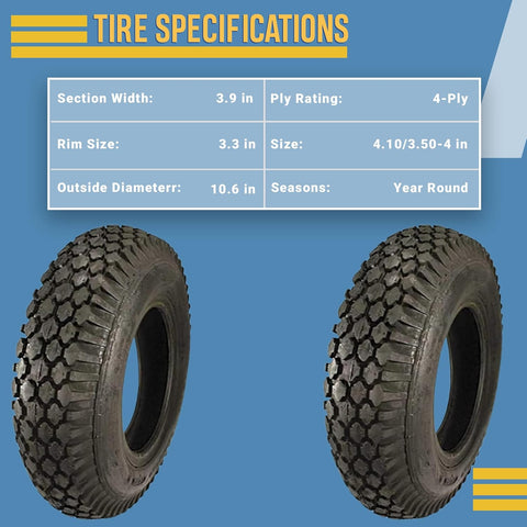 2 New 4.10/3.50-4 Stud Tires – Tubeless