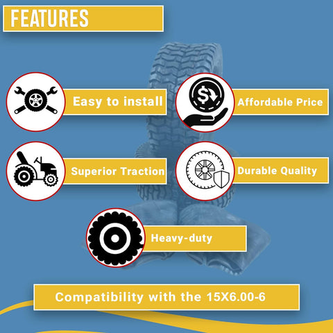 - ✔️𝐔𝐍𝐈𝐕𝐄𝐑𝐒𝐀𝐋 𝐂𝐎𝐌𝐏𝐀𝐓𝐈𝐁𝐈𝐋𝐈𝐓𝐘 𝐖𝐈𝐓𝐇 𝐕𝐄𝐑𝐒𝐀𝐓𝐈𝐋𝐄 𝐒𝐈𝐙𝐈𝐍𝐆 The sizing of these tires (15x6.00-6) is versatile and compatible with a wide range of lawn mowers and tractors. This adaptability makes them a suitable choice for various equipment models, enhancing their utility and convenience