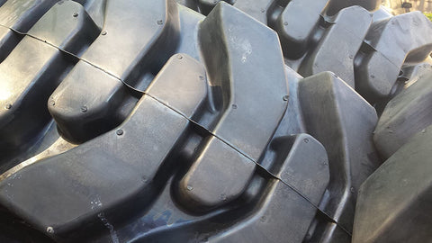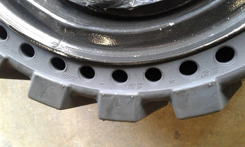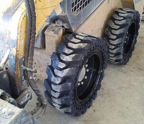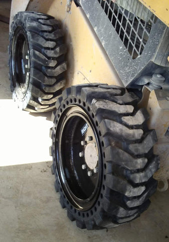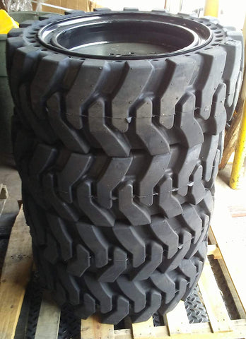 Set of Four (4) Solid Skid Steer Loader Tires. Size: 33x12-20 (12-16.5)