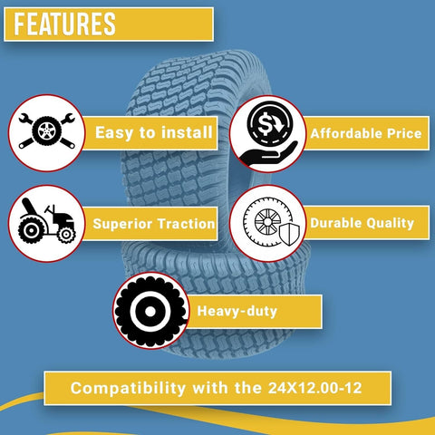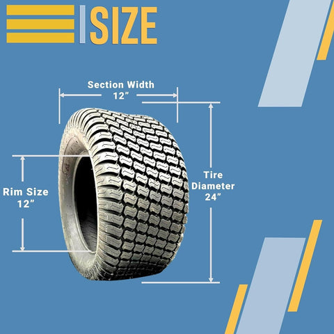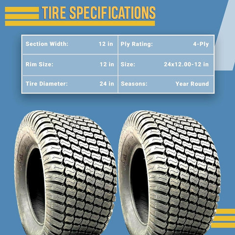 Two 24x12x12 Riding 24X12.00-12 Lawn Mower Tractor Tires Tubeless 24x1200x12