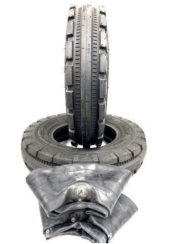 Set of 2 Brand New 4.50-10 Three-Rib Front Tractor Tires + Tubes