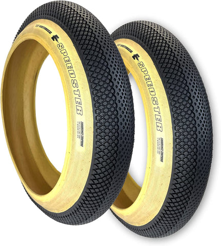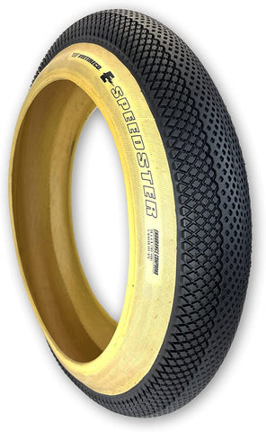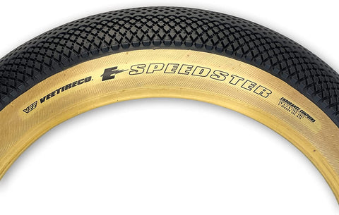 Have a blast with Vee Tire 20x4.0 Speedster Skinwall bike tires. Vee Tire's 20x4.0 Speedster bike tire is at the top of its class! This tire has the Endurance compound to outlast the competition, an E-bike 50 designation and Over Ride puncture protection. The Speedster is designed for rolling speed and minimal drag on hard-pack or paved terrain. The honeycomb center tread provides virtually zero rolling resistance and unbelievable tread life. This feature also gives you excellent traction in dry or wet conditions. Large diamond shaped side knobs provide the grip you need in corners, while the tread knobs get smaller towards the center for the ultimate speed and traction. And with its balloon-style structure, you will feel like you are floating on air.