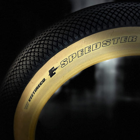 Have a blast with Vee Tire 20x4.0 Speedster Skinwall bike tires. Vee Tire's 20x4.0 Speedster bike tire is at the top of its class! This tire has the Endurance compound to outlast the competition, an E-bike 50 designation and Over Ride puncture protection. The Speedster is designed for rolling speed and minimal drag on hard-pack or paved terrain. The honeycomb center tread provides virtually zero rolling resistance and unbelievable tread life. This feature also gives you excellent traction in dry or wet conditions. Large diamond shaped side knobs provide the grip you need in corners, while the tread knobs get smaller towards the center for the ultimate speed and traction. And with its balloon-style structure, you will feel like you are floating on air.