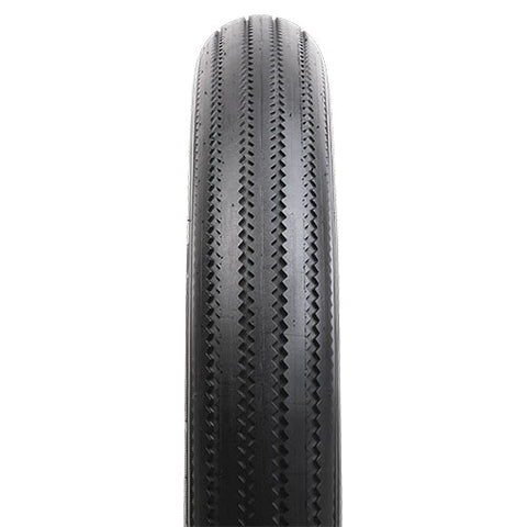 Vee Tire Zigzag FatBike Tire 20 x 4.0 has its own unique style compared to other fat tires. Its straight-line knobs match your classic old school bike tires with todays modern lifestyle design of beach, cruiser, bobber, or speedway rider. This tire uses the Multiple Purpose Compound provides durability and lengthens the life of the tire with a low-hardness rating of 56. The Override Technology increases puncture protection. Has a TPI of 26. The Recommended pressure is 8-30 PSI. Weighs 1775g and is Rated for E-Bikes up to 50kph. Available in Black.